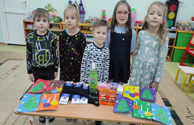 Тем, кто с честью и достоинством исполняет свои обязанности в тяжёлых условиях, новогодняя открытка, выполненная руками детей, станет настоящим подарком. Воспитанники группы «Колобок» пожелали нашим солдатам крепкого здоровья, веры в победу и скорейшего возвращения домой.